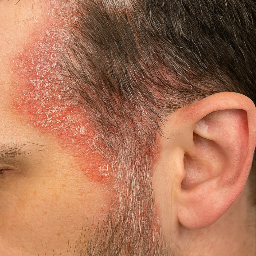 Seborrheic Dermatitis and Psoriasis can flare up anywhere — around your ears, eyebrows, scalp, arms, or even your back.